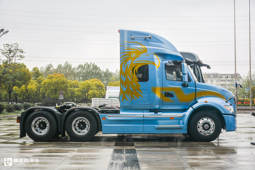 得益于之前和美国纳威司达(Navistar)的合作,江淮从纳威司达子公司万国卡车(International Trucks)那里学习了很多经验,有这个基础,格尔发V7的的外形设计就是十足的美式风格。一些设计元素与万国的LT系列和ProStar系列有相似之处,正是这些细节积累,才让V7看着像美国长头卡车。