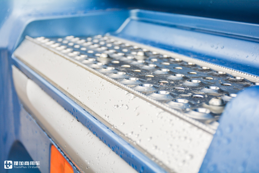踏板特别的长,不锈钢材质,边缘有一条细小的防滑齿,与侧裙板结合在一起,视觉效果特别好,用料也很有质感,这一个小细节确实太棒了。