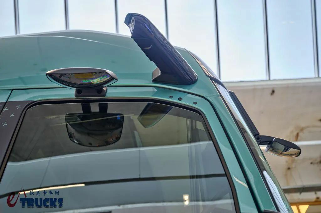 并且,沃尔沃FH Aero Electric长途电动重卡还用上了CMS电子后视镜系统,通过它取代了传统的光学后视镜。二者相比之下,电子后视镜的正面撞风面积更小,有助于降低风阻、减少风噪。并且:沃尔沃CMS电子后视镜系统采用双摄像头方案,还结合了红外影像技术,即使在黑夜及恶劣天气下也有着清晰的视野。