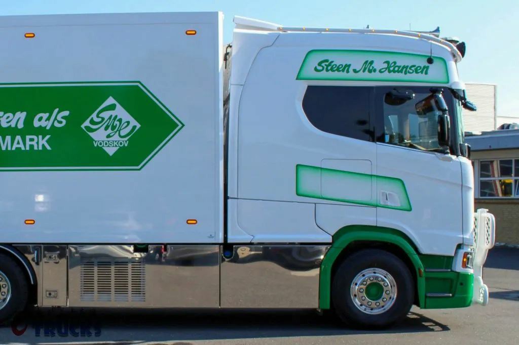 不过,我们今天文章的主角是一个例外:它是一台斯堪尼亚770 S冷藏车,来自丹麦的Steen M. Hansen运输公司,主要从事于鲜花的运输。众所周知:自采摘下后,鲜花的寿命就在极速消耗。想要保证花朵新鲜,就得将其保持在低温下进行运输,还得尽可能压缩物流时间,让花束能富有生机的“绽放”在消费者面前。“陆地飞行器”一般的高时效性要求,便催生了我们今天文章的主角。