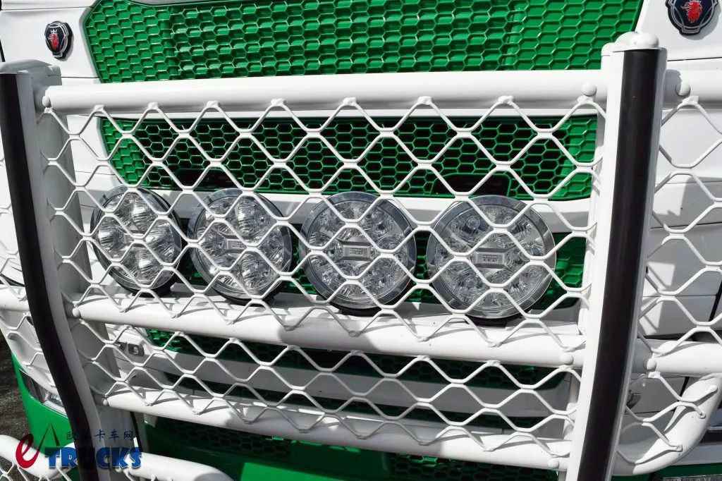 在后期使用过程中,这台斯堪尼亚770 S冷藏车还新增了车前防撞杠,并附加前向探照灯,带来更好的前部保护效果及照明效果。车前防撞杠也被称之为“Bullbar”牛栏,在澳大利亚及北欧地区比较常见。在这些地区时常会出现野生动物冲入道路的情况,采用牛栏便能为车辆结构带来保护,避免车辆因碰撞而损坏抛锚在无人区。