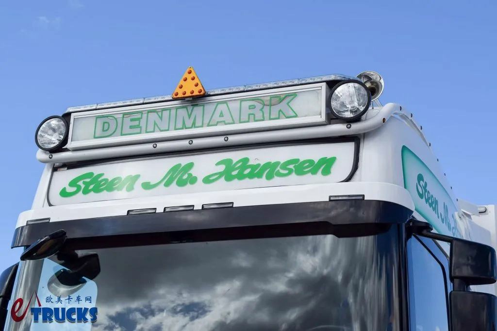 在斯堪尼亚NTG代车型原装外观的基础上,Steen M. Hansen公司为其加入了不少的定制化自有元素。首先,车辆的涂装采用了该公司标志性的绿色与白色搭配,显得简约且清新。后视镜、遮阳板下端及前风挡下端都采用了高光黑色面漆,使前风挡区域更显整体性,同时也提升了高端感。