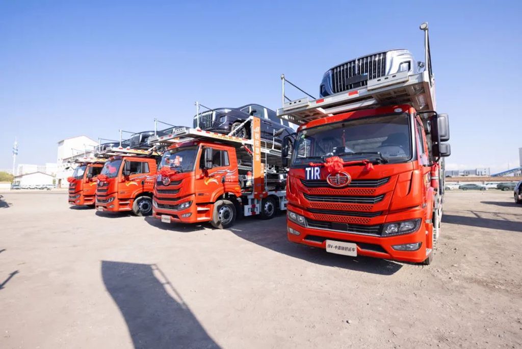 200台悍V中置轴轿运车交车!一汽解放与轿铁物流战略合作签约仪式成功举行