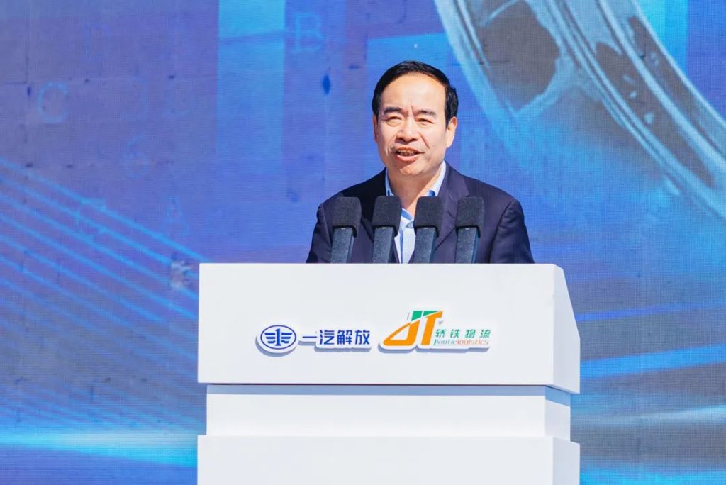 随后,发车仪式正式启动,这不仅预示着一汽解放与轿铁物流的强强合作正式启航,更代表着中国制造业与物流业更深层次的融合发展。