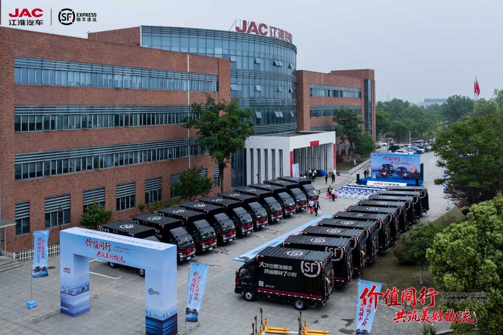 4月22日,“价值同行 共筑美好物流”江淮商用车&安徽顺丰批量轻卡交付仪式在合肥JAC新港基地举行。近百辆江淮1卡骏铃V5批量交付安徽顺丰,强强联合,共同探索降本增效运输新模式。