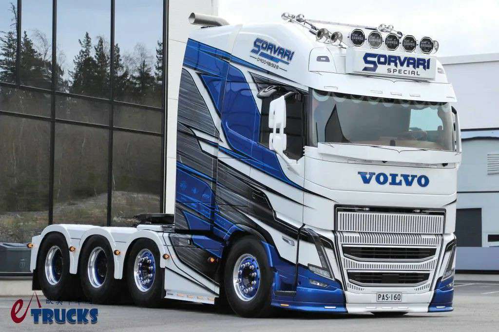 今天,我们文章的主角正是这样一台特殊的卡车。它来自芬兰Kuljetus Pasi Sorvari Oy公司,该公司主要从事于特种运输。为了牵引挖掘机、打桩机等重型机械,该公司增购了这台沃尔沃FH16大件牵引车。能玩得起重型机械,自然是不差钱的主。独具风格的内外爆改造价高昂,但也能让它从一众常规车型中脱颖而出。