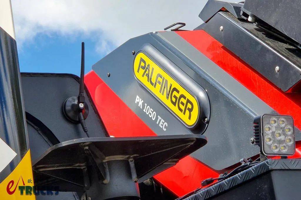 本车搭载的随车起重机来自奥地利帕尔菲格,型号为PK 1050 TEC。它是帕尔菲格重型随车起重机中的旗舰型号之一,最大起重力矩达到105吨·米,采用P-Profile高强度臂架、LX-6控制阀系统、PALTRONIC 180电子控制系统等帕尔菲格顶尖技术,武装到牙齿。当然,它的自重也达到了一个极高的数值:7.48吨。