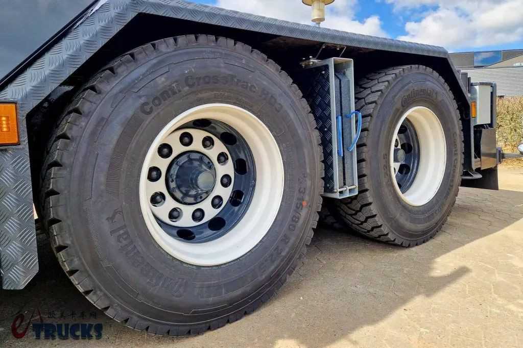 对于牵引车而言,四轴8×4驱动形式一般只用在大件车等重型运输车辆上,为什么这台斯堪尼亚R 660随车吊牵引车也用了呢?答案还是在于重量。对于一般欧洲卡车而言,其前桥最大轴荷大概在9吨左右的水平。驾驶室、发动机等重型部件本就使前桥不堪重负,再加随起重机自身重量,很容易造成结构上的损伤。这时,增加一根前桥就成为了合理的选择。