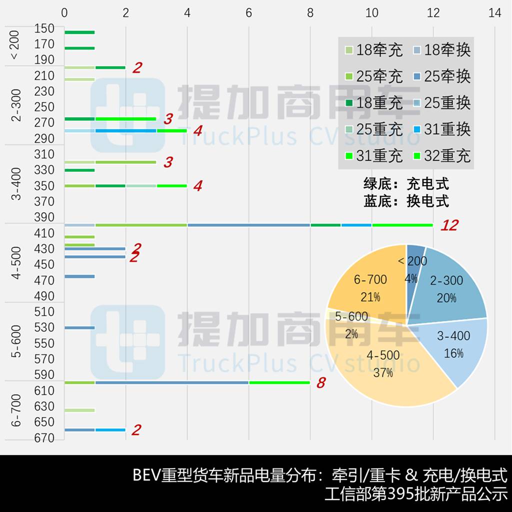 BEV重货电量分布:400+600度双核方案突出,充/换电式主流领域争夺异常胶着