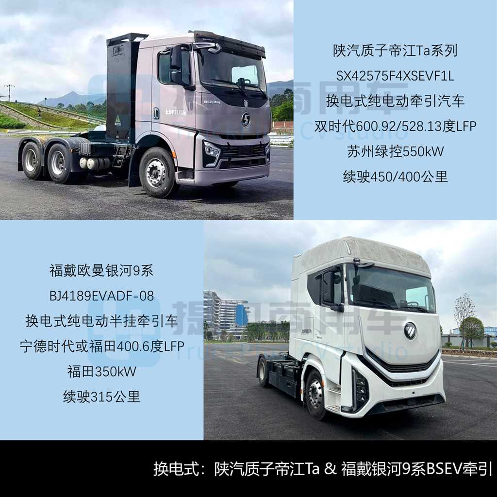 自去年6月期公示起,充电式新品一扫过去数年的颓势,开始连续占据BEV牵引车的头把交椅;而除去2024年10月期的短暂起势后,换电式再没能取得过往披荆斩棘的表现,结合市场端销量被充电式拉大差距,也为“沉迷换电”的玩家们敲响了警钟。其实本批堪称近一年内唯一的“攻守平衡”月份,充/换电新品均为13款,且后者也终迎复苏。以下仅举两例: