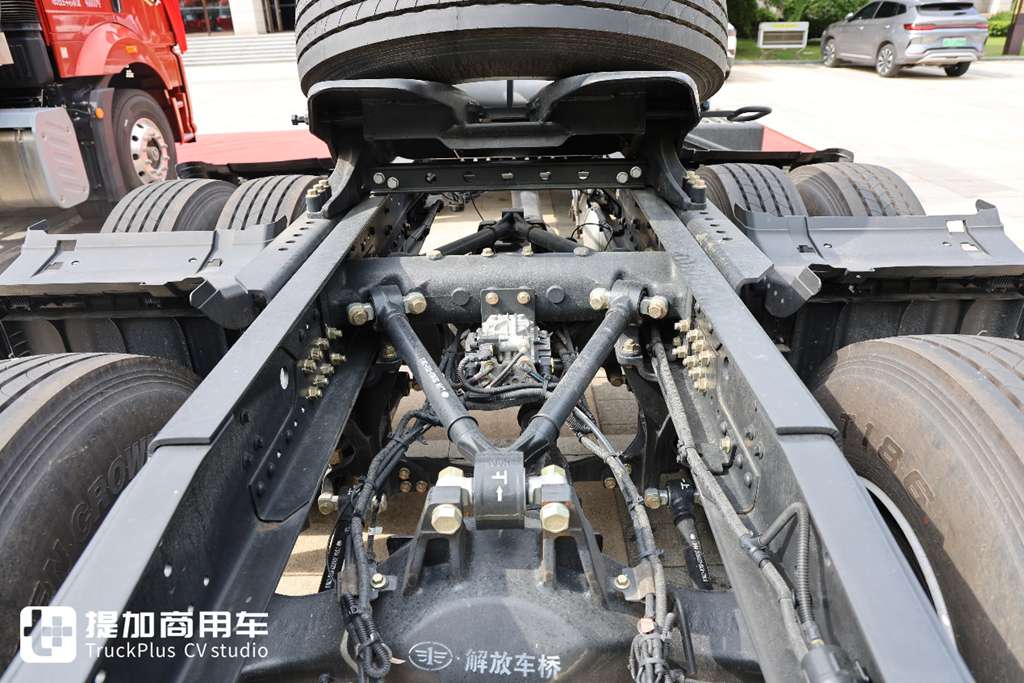 一汽解放重卡采用黄金动力匹配,常规车型486马力+12挡超速挡变速箱+3.7速比单级减速桥,拥有全场景运输的适应能力。解放动力6SM6发动机在800转时即可输出2000N.m扭矩,486马力机型峰值扭矩高达2300N.m,采用瞬态扭矩补偿、高流量增压器、进气系统优化等技术,实现加速时间提升15%,高原限扭海拔提升25%,轻松应对拉煤线的复杂路况。