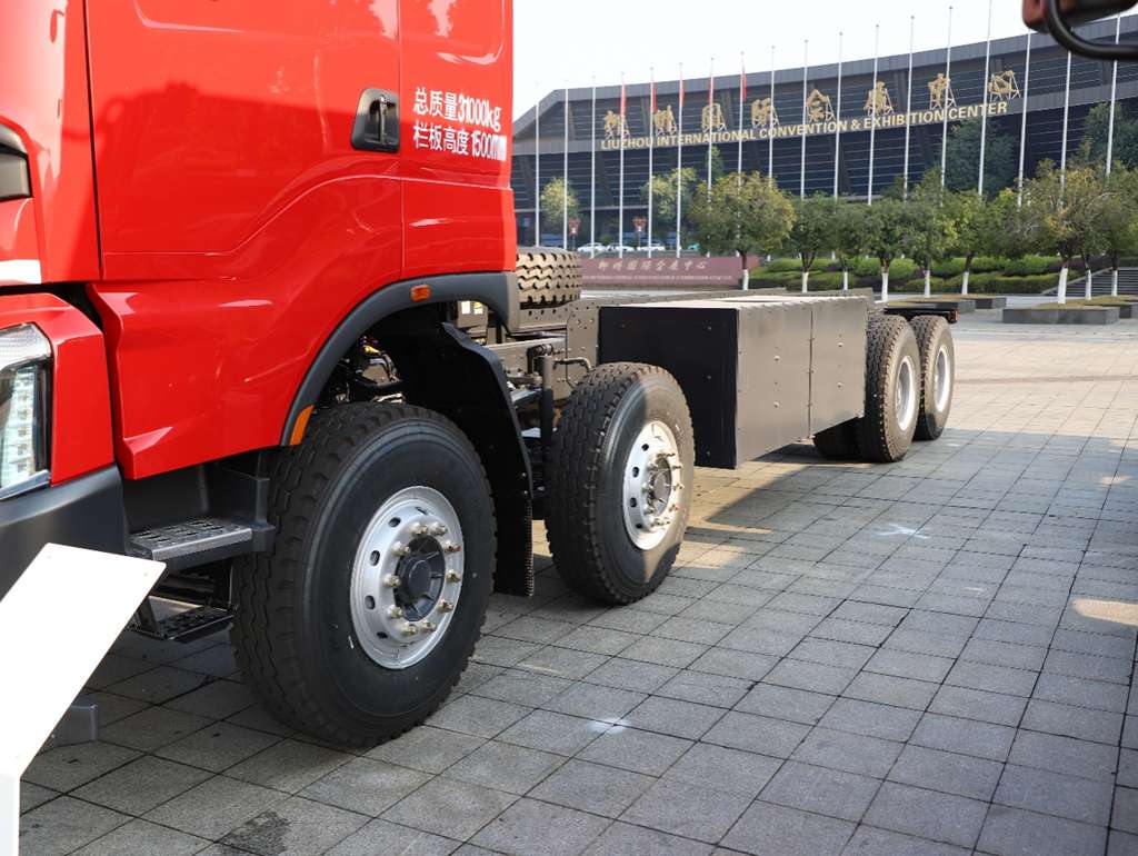 工程运输追求高效运转,而动力和承载正是实现这一目标的关键支撑。乘龙H7纯电自卸车采用双永磁同步电机+4AMT变速箱组合,整车最大功率460kW(约626马力),重载起步轻松有力,爬坡上坎不费劲。底盘采用一次冲压成型大梁,搭配2*9.5T前桥和2*25T轮减后桥,承载能力更强。此外,8-8.7米超长货箱设计,装载容积较同类车型提升18%,大幅提升了单次运输效率。