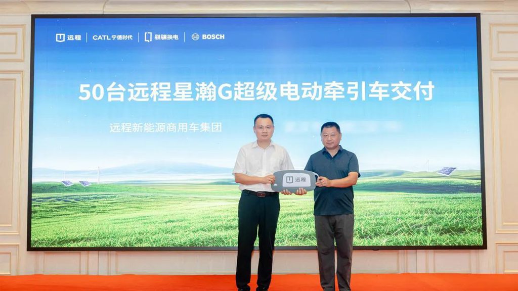 6月26日,远程新能源商用车携手时代骐骥、博世在武汉阳逻港畔重磅发布星瀚G超级电动牵引车新品,并完成首批50台交付。多方合力打造具有示范效应的换电重卡运力生态,助力湖北及华中区域交通物流绿色升级。活动现场,远程与湖北大客户签署100台新能源重卡订单,同时与时代骐骥达成生态战略合作签约。