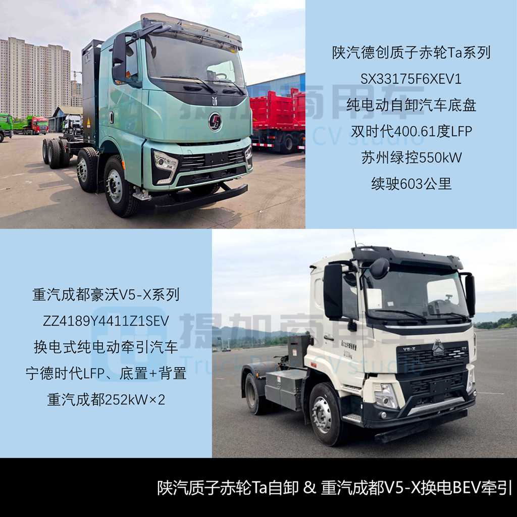 三一孚能830度NCM、长城智卡标配版BEV牵引,陕汽质子赤轮Ta-8×4自卸版