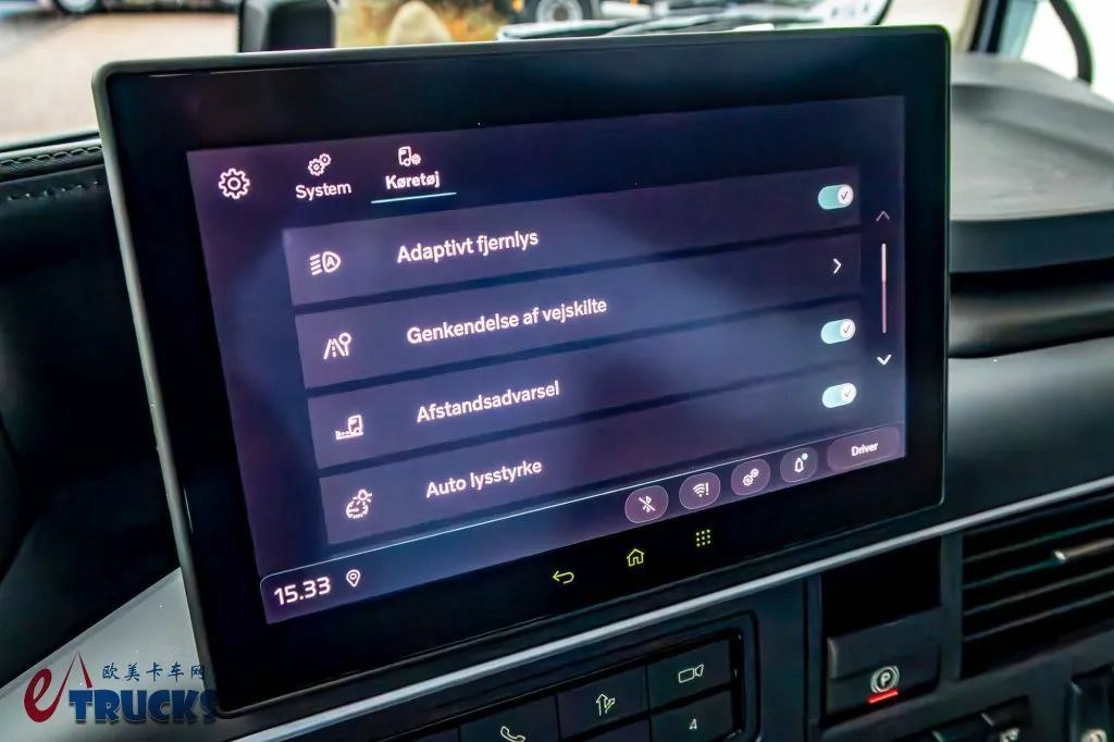 作为一台新时代旗舰重卡,这台沃尔沃FH Aero还配备了CMS电子后视镜系统。相较传统光学后视镜而言,电子后视镜的风阻、风噪更低,还能避免镜面对驾驶视野进行的遮挡。并且,电子后视镜还能通过图像处理手段,在黑夜、雨雪天气等恶劣条件下提供更开阔视野,是未来的“大势所趋”。如今除#斯堪尼亚外,其余欧卡“六姐妹”都用上了电子后视镜。