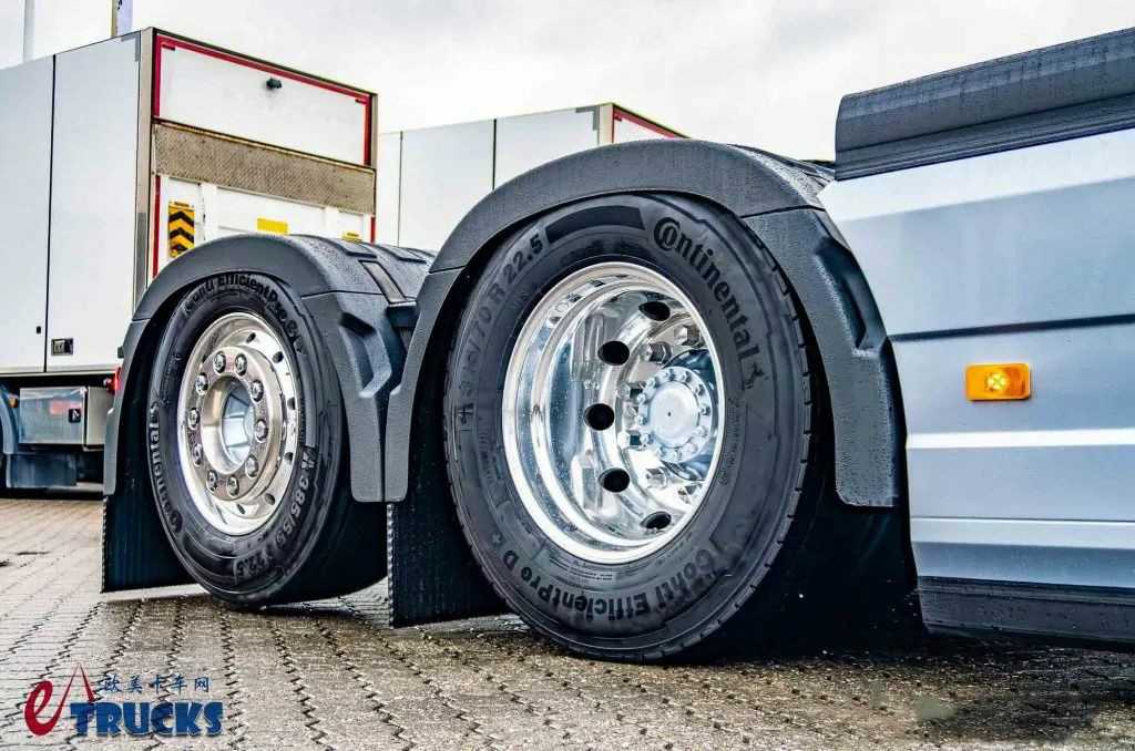 既然是低风阻车身,那自然要将各类空气动力学套件武装到牙齿。在低风阻车身结构的基础上,沃尔沃还为FH Aero车型设计了多种多样的导流结构。例如侧裙板上下的黑色橡胶片、前保险杠下方的“空气坝”等等,能够使牵引车与挂车、地面之间更紧密,进而降低空气阻力,还能提升行驶稳定性。