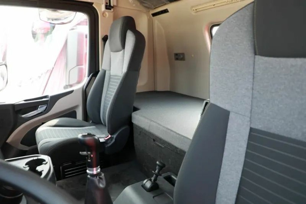 长途运输中,卡友们大部分时间都在驾驶室内度过。江淮跨越X5以“司机为中心”打造舒适空间,下卧铺宽度达960mm,配合1.8米驾驶室内高,为卡友们营造了一个宽敞的休憩环境。此外,530L超大储物空间可以轻松容纳卡友们的日常用品。细节之处,自动挡怀挡设计更是释放了主驾空间,操作更加便捷,让驾驶变得更加轻松自如。