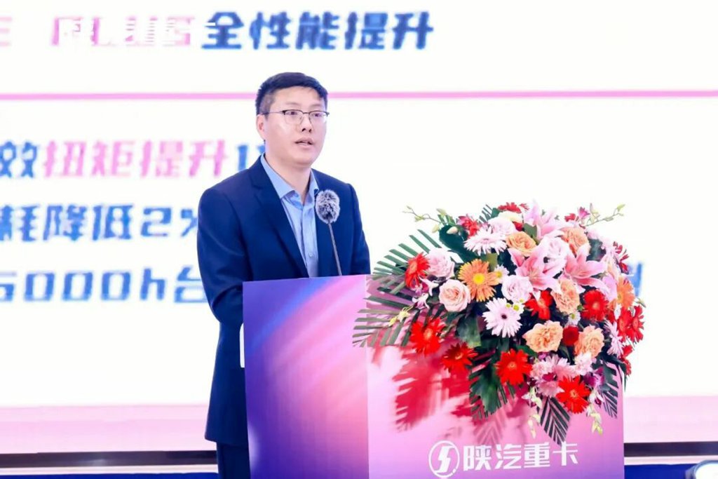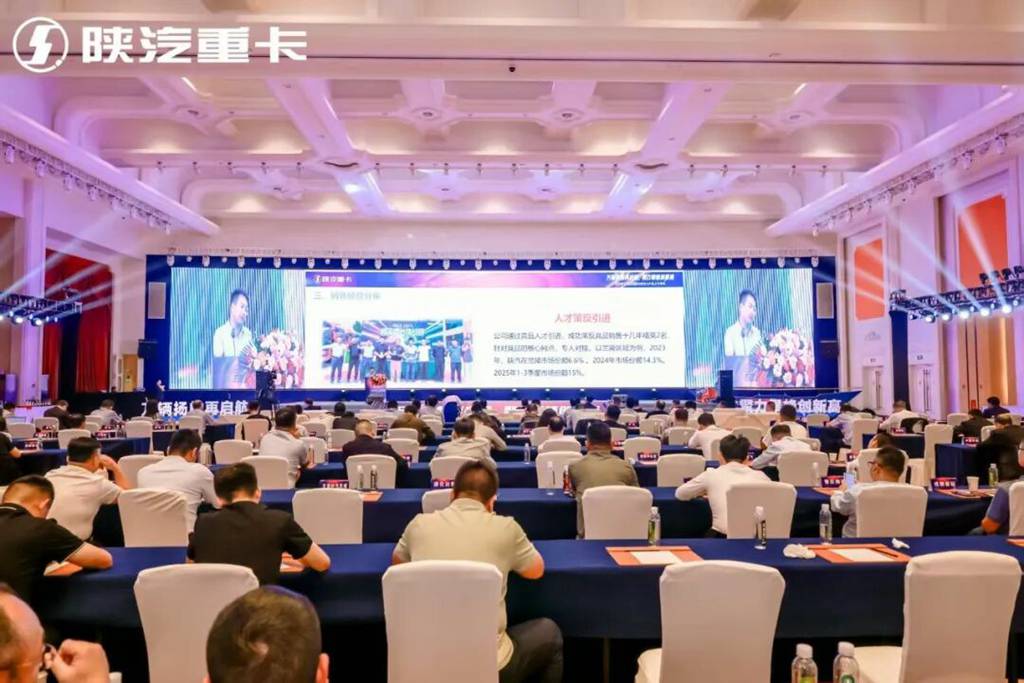陕重汽销售总监、销售公司总经理赵承军,陕重汽价值工程部部长辛晓鹰,潍柴全球营销中心商用车动力销售公司总经理李广,西安康明斯发动机有限公司营销中心总监蔡献,陕西汉德车桥有限公司副总经理王林,陕西法士特汽车传动集团有限责任公司销售总公司总经理许亮,产业链、中集车辆、宁德时代、万里扬、大客气嘉宾和全国营销区相关渠道合作伙伴齐聚现场,共同见证陕汽在载货车领域的全新突破。发布会由陕重汽销售公司副总经理田明主持,陕重汽销售公司党委副书记、副总经理魏炳亮发表致辞,陕重汽销售公司副总经理邱明安做载货车市场产品规划及全新上市产品讲解。