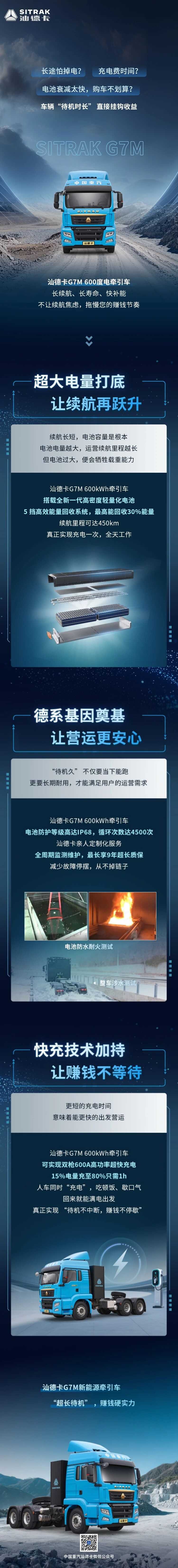 汕德卡新能源牵引车:续航不慌,赚钱才快! 张赫 企业快讯, 卡车, 新能源2025年10月31日 14:411.93K0 中国重汽(1407)本文来源企业提供,经授权后由张赫发布,观点不代表提加商用车网的立场,转载请联系原作者。张赫4.79K409.93M53.85W