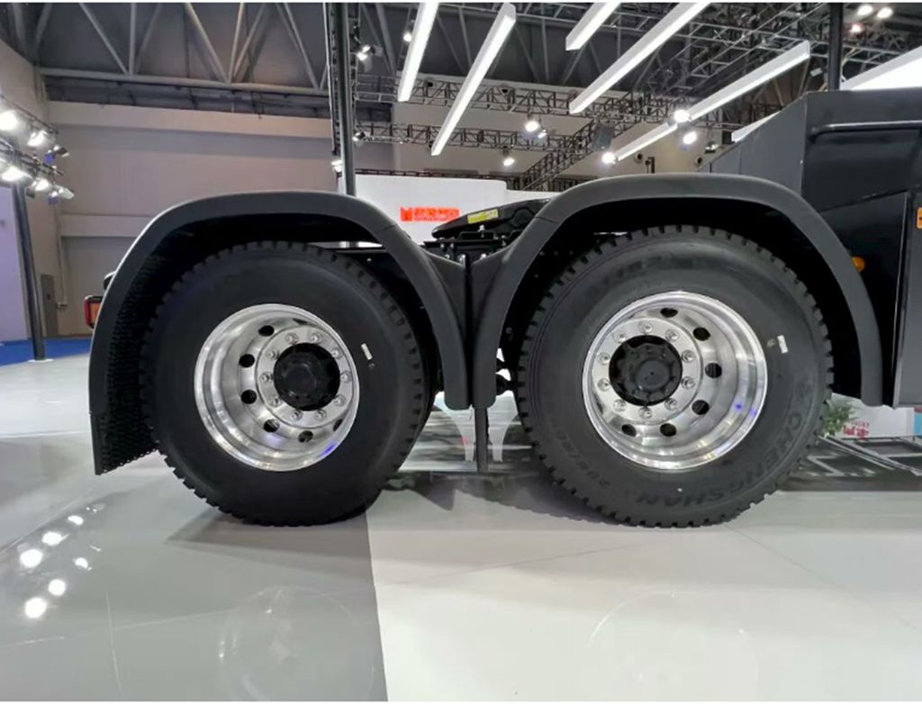 整车采用多项轻量化设计,其中,352度电池版本的车型,其集成电驱桥减重400kg、电池系统减重400kg、其他底盘系统减重400kg,共计减重1.2t,车辆自重仅9.3t,较同级别车型轻11%。车身更轻意味着在合规前提下可装载更多货物,让单趟运输收益更高。