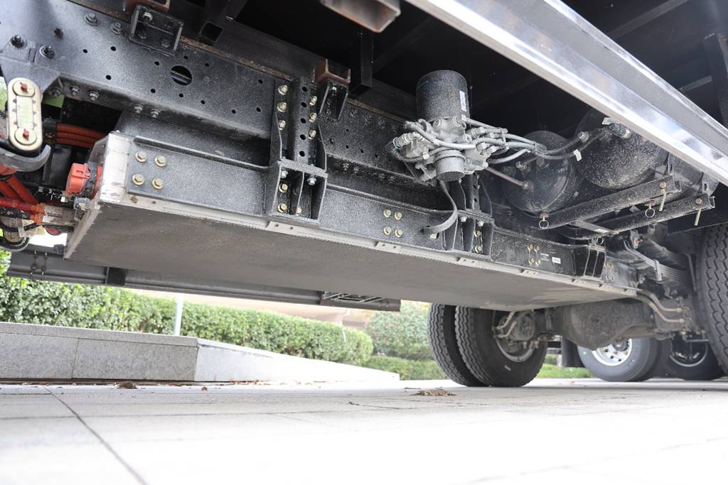 车桥采用汉德5.5吨级别车桥,全车多片簧加强型悬架,轮胎标配7.50R16钢丝胎,大梁为180直通梁设计,种种配置无不体现着这辆豪沃悍将电动轻卡强悍的承载性能。