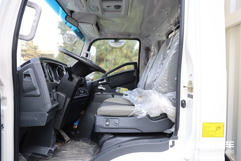 车内三座布局,座椅中间没有任何凸起和阻挡,驾驶员在车内可以直接躺下休息。主驾驶座椅采用气囊减震座椅,带多级阻尼调节和一键充放气功能,在烂路行驶时可以提升舒适性。