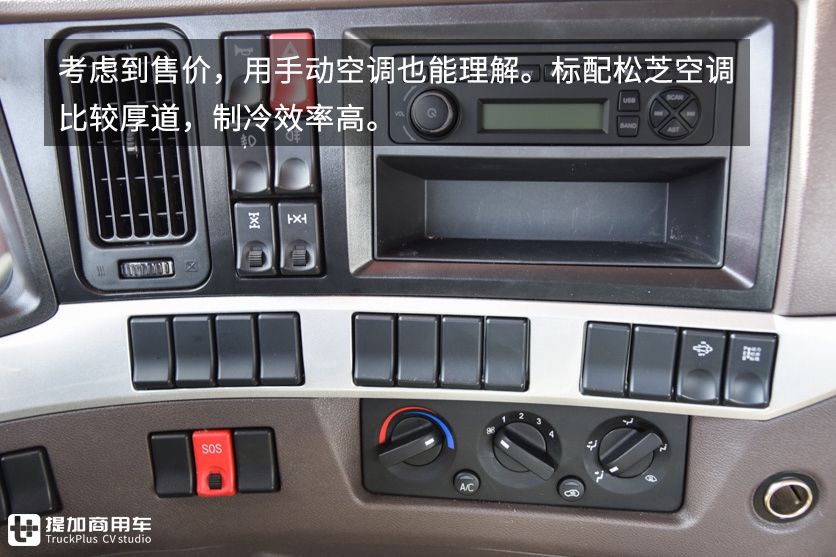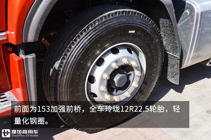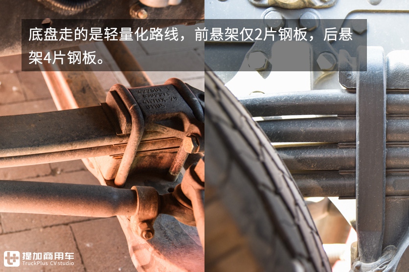 驾驶室采用前螺旋弹簧后气囊的4点悬浮减震。值得一提的是发动机进气管道为双进气口,可以增加进气效率。