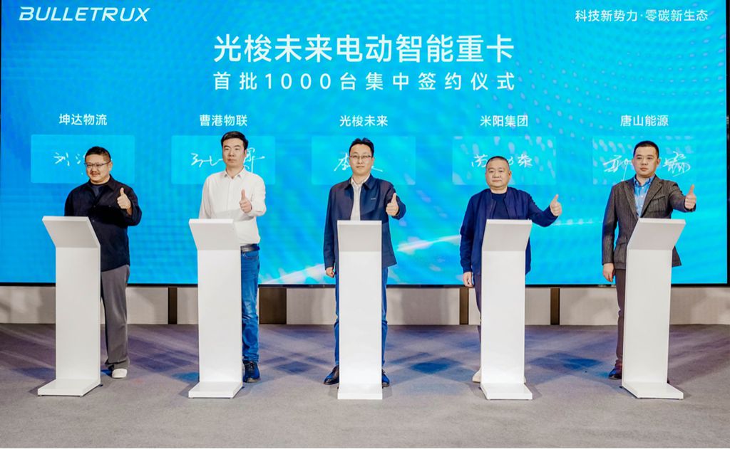 现场,光梭未来电动智能重卡首批1000台集中签约暨首台1.0纯电重卡交付仪式同步举行,标志着这家新能源重卡行业的“新势力”,正加速推动行业共赴绿色、智能、全球化的未来!