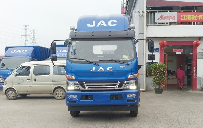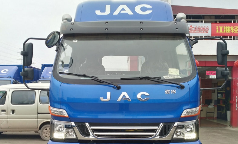 而江淮骏铃V9则不同,外观造型的线条整体来说比较流畅,因为江淮也是一家做商用车比较早的汽车厂家,其外观设计经历了数十年的发展,在近几年才确立下来一套家族式的脸谱,前脸镀铬元素运用会比较多,唯一有点诟病的是灯组造型有点怪异。