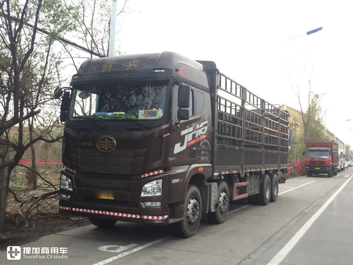 还是平地板驾驶室,配液力缓速器还有空气悬架,J7前四后八载货车已经开始路试