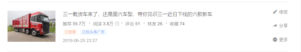 原文链接:三一载货车来了,还是国六车型,带你见识三一近日下线的六款新车