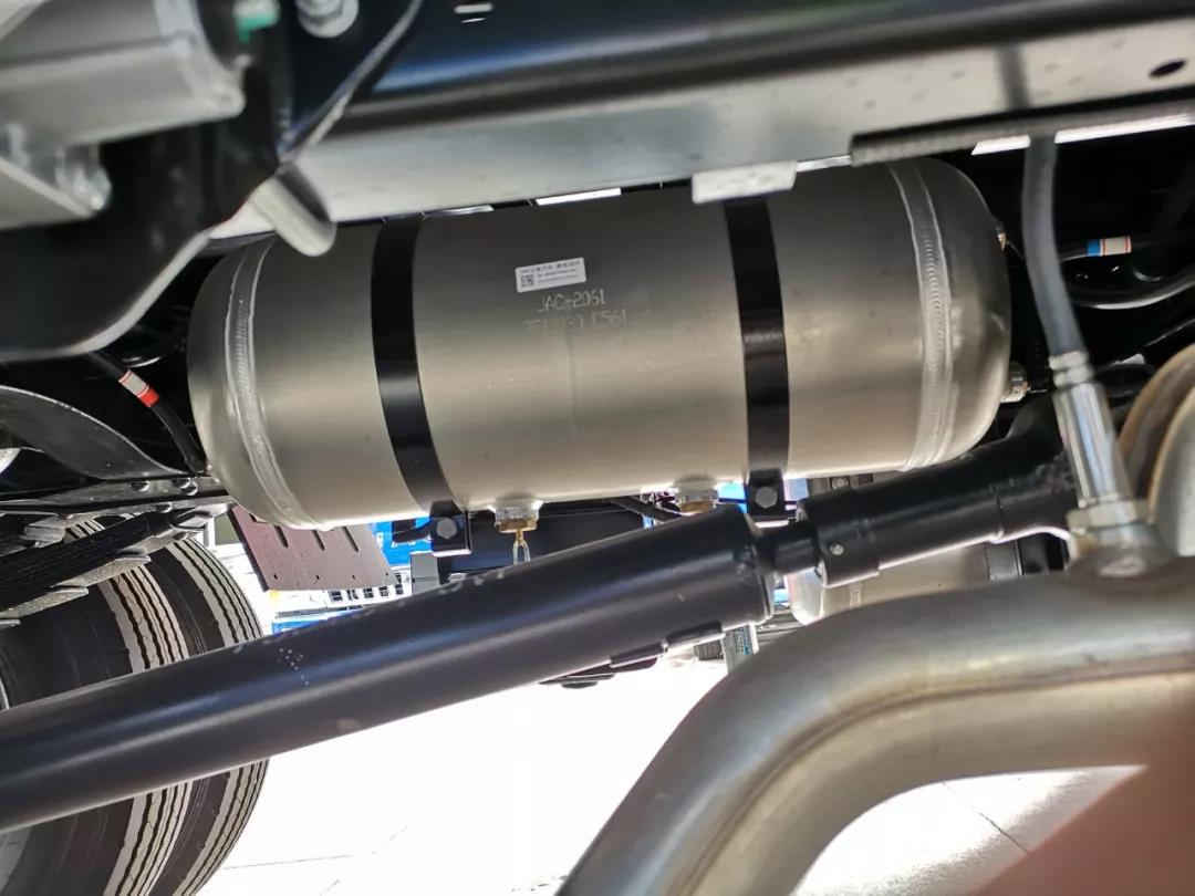 骏铃V6车身部件大量应用铝合金材料,变速箱外壳、油箱、侧/后防护、储气筒,甚至连外后视镜杆都采用了铝合金材料,可谓是轻量化到牙齿。