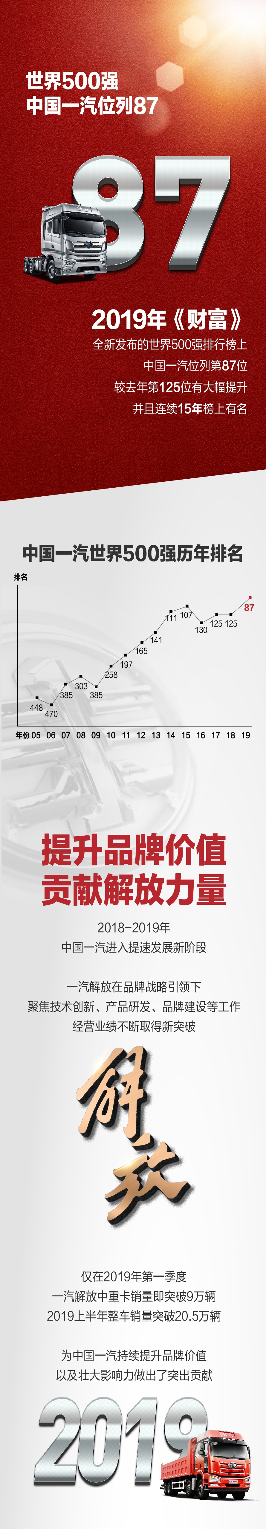 中国一汽跻身世界500强第87位,解放实名点赞! 编辑张靖 企业快讯, 卡车2019年7月24日 11:3511.21W0 一汽解放(528)本文来源一汽解放,经授权后由编辑张靖发布,观点不代表提加商用车网的立场,转载请联系原作者。编辑张靖提加商用车小编,还请大家多指教!6.22K887.11M39.56W