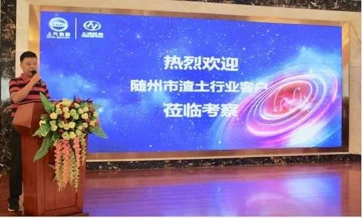 湖北随州某渣土运输公司企业代表、湖北随州某渣土处置公司企业总经理与上汽红岩随州赐吉代表上台交车交换金钥匙,双方代表上台签约,几家实力雄厚的公司强强联合,展开战略合作。