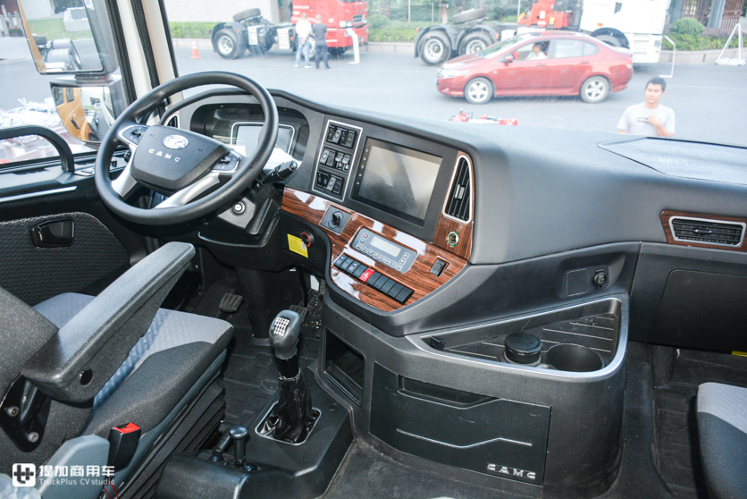在具体产品上,经典的华菱重卡推出新款内饰,风格和汉马H7、H9内饰相同,比老款华菱重卡多了许多舒适性配置。比如8英寸导航,8寸LED组合仪表,220V电源,集成电控中心,气囊减震座椅具有高度记忆、快速放气功能,多功能方向盘,软包仪表台,10升储物箱,高配选7升冰箱(-10-10度),铸铝气动转向管柱,自动空调等。