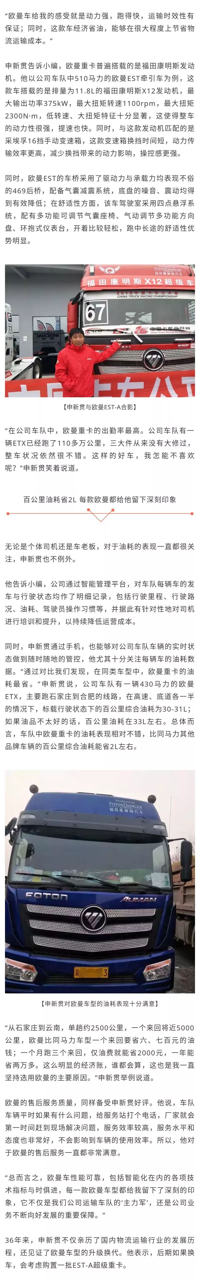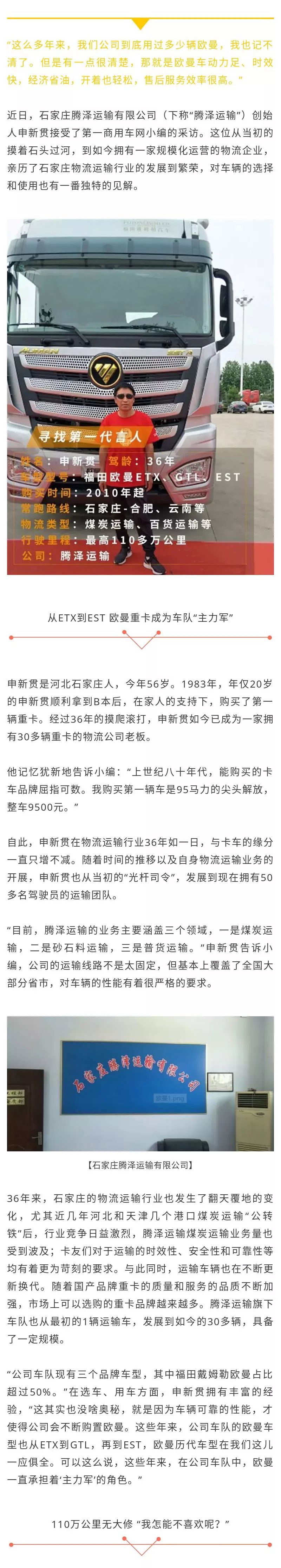 占比超50% 欧曼重卡缘何成为这支河北车队的“主力军”? 编辑张靖 人物观点, 卡车2019年8月8日 09:217.76W0 欧曼(62)本文来源福田戴姆勒汽车,经授权后由编辑张靖发布,观点不代表提加商用车网的立场,转载请联系原作者。编辑张靖提加商用车小编,还请大家多指教!6.22K926.62M39.61W