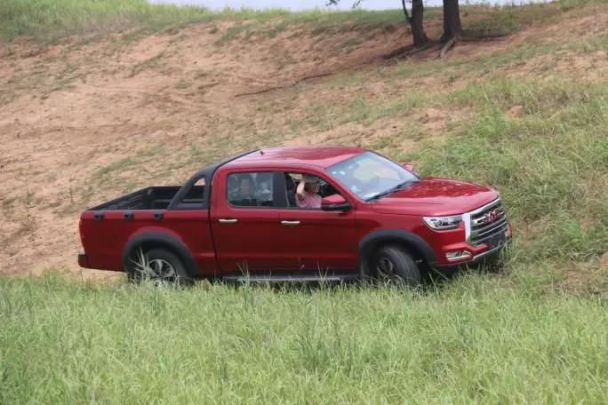 来到侧坡路段,车辆在这里的姿态已经非常倾斜,不过从车辆两侧的离地间隙来看并没有太大的区别,悬架的支撑性非常不错。在交叉轴地带并没有形成单轮或双轮离地的情况。资深越野达人周先生告诉我们,这种现象证明了帅铃T8的悬架形成足够长,在一般的越野路段不会出现车轮悬空的情形,这比大多数的SUV都要出色。