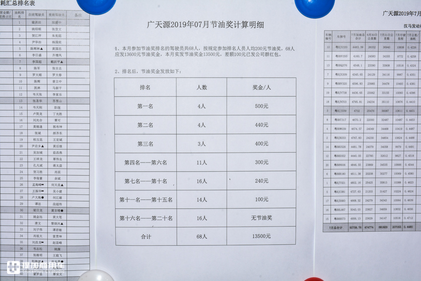 沈文超对车辆的管理是我见过的人里面最仔细的,就拿油耗来说,每辆车每天的加油量会有表格统计,每月车辆油耗汇总又做一个表格。公司50辆车有30辆是汉马发动机,20辆是潍柴发动机,变速器和车桥都是华菱汉马系列,不同发动机的车又单独做一个油耗排名比较,根据油耗排名给油耗比较低的驾驶员发节油奖。