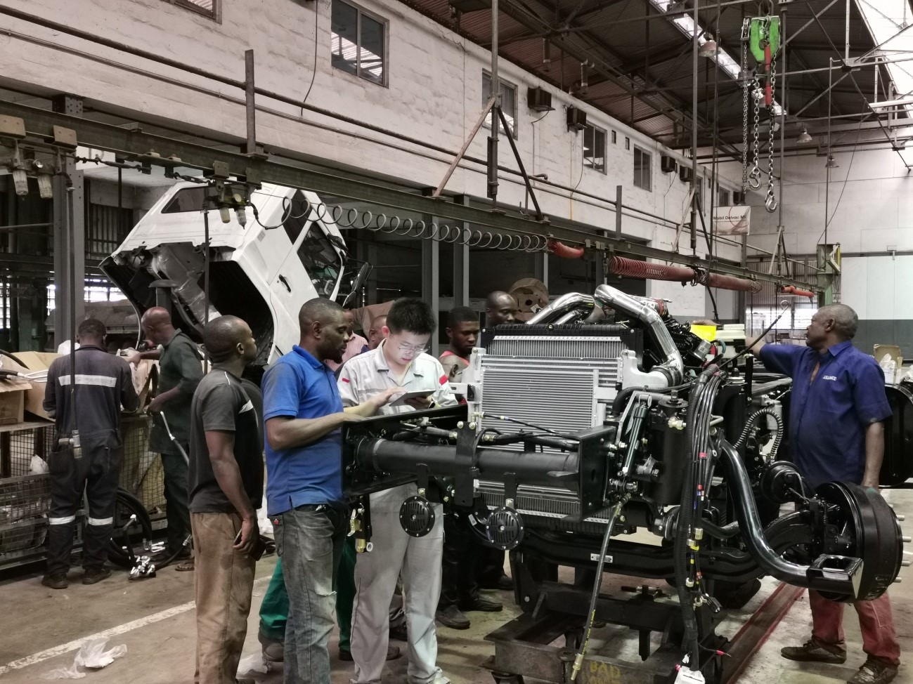 为推进双方协同发展,东风商用车充分发挥当地资源优势,改变原有的出口形式,由简单的产品输出延伸到CKD模式的“技术 +产品”输出,实现了东风商用车在尼日利亚的本土化生产,为后续深度合作奠定了基础。设备检修高温假期间,东风商用车接到尼日利亚CKD装车技术支持的需求,即刻安排制造技术团队奔赴当地,指导工厂人员进行现场装车。其网络伙伴表示,中国员工体现出的勇于创新、敢于吃苦的精神更让他们坚定了对东风商用车在尼日利亚未来发展的信心。