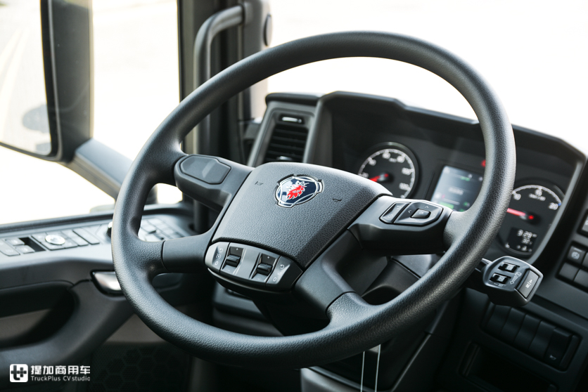 动力配的是斯堪尼亚DC13欧五发动机,410马力,扭矩2150Nm。发动机1000转的时候就能输出最大扭矩,动力表现可以媲美很多440马力发动机。搭配2.71后桥速比,整车经济时速在70-90km/h左右,