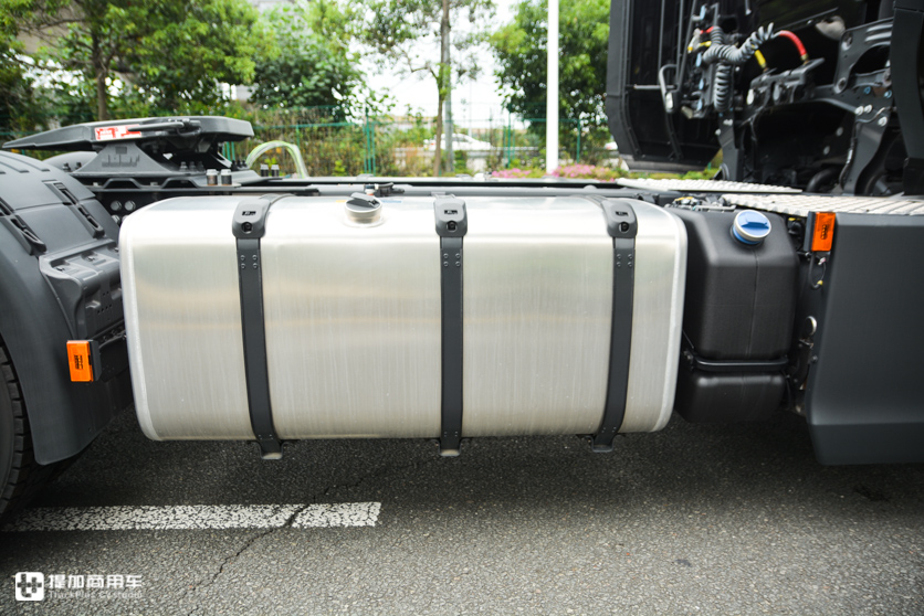 3950mm加长轴距可以适配更大的挂车和更大油箱,底盘左右分别一个700升和600升的油箱,总计1300升容量续航能力很惊人,按快递车的工况,就算百公里油耗25升,随便都能跑5000公里不加油。据说这个空车头从深圳到上海油耗只要12升/百公里。