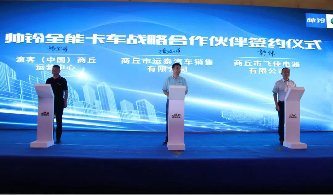 不止是个体用户,在上市会现场,帅铃还分别与滴客(中国)商丘运营中心、商丘市飞佳电器有限公司等集团用户签订了购车协议,而一上市,就收到大大小小这么多的订单,不难看出,正是因为在帅铃在产品品质、智能升级以及服务理念等方面的不断完善。