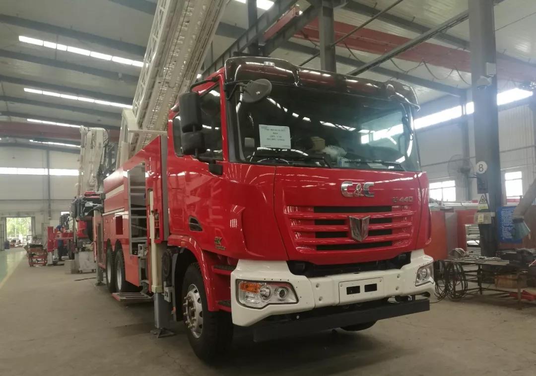 2019年8月31日,中集联合卡车与沈阳捷通协同开发的举高类消防车产品系列首台样车“32米多功能云梯消防车”正式下线。这款云梯消防车从产品立项到底盘研发,再到生产、整车下线,前后不到半年的时间,充分展现了“中集速度”。