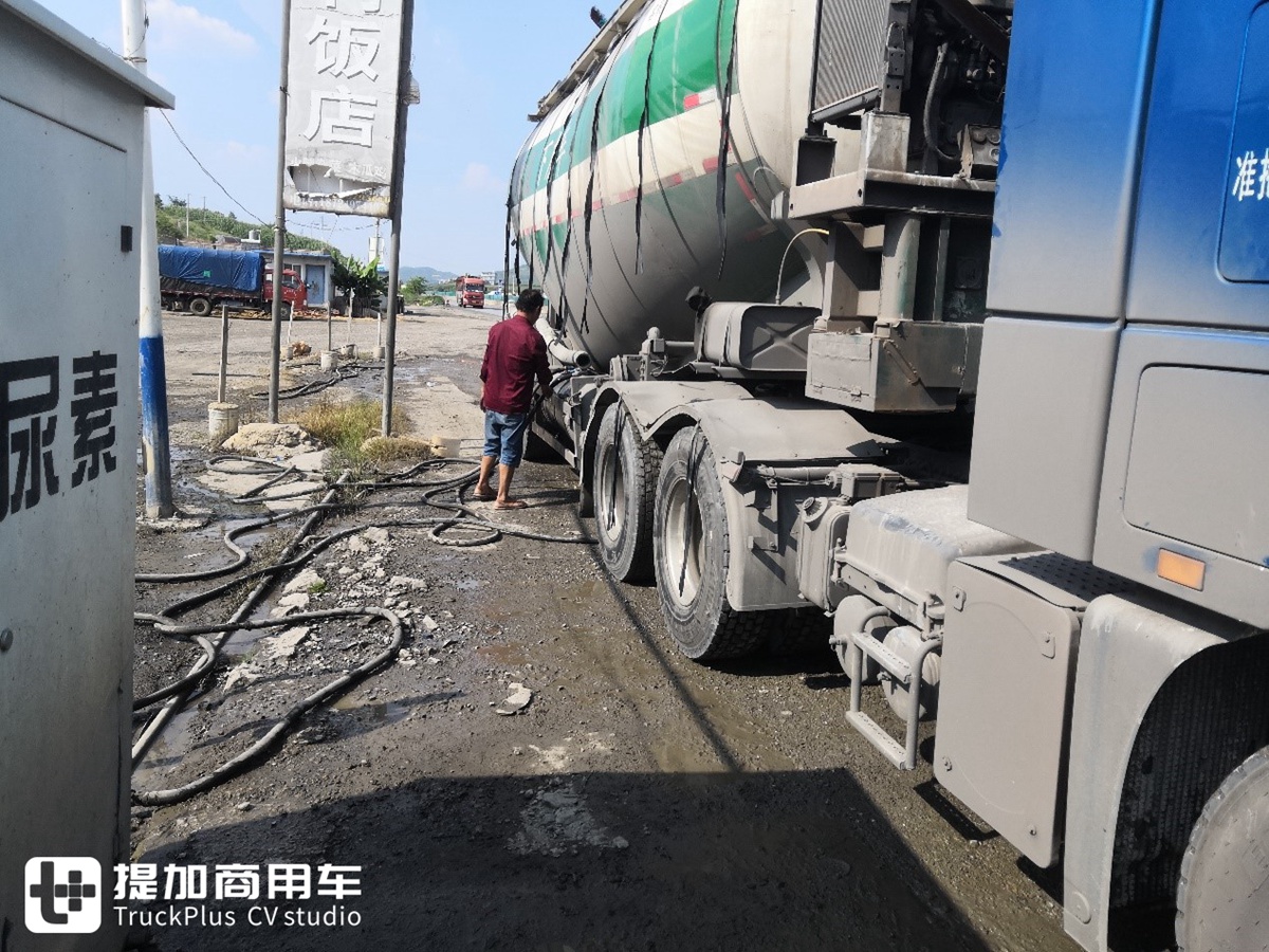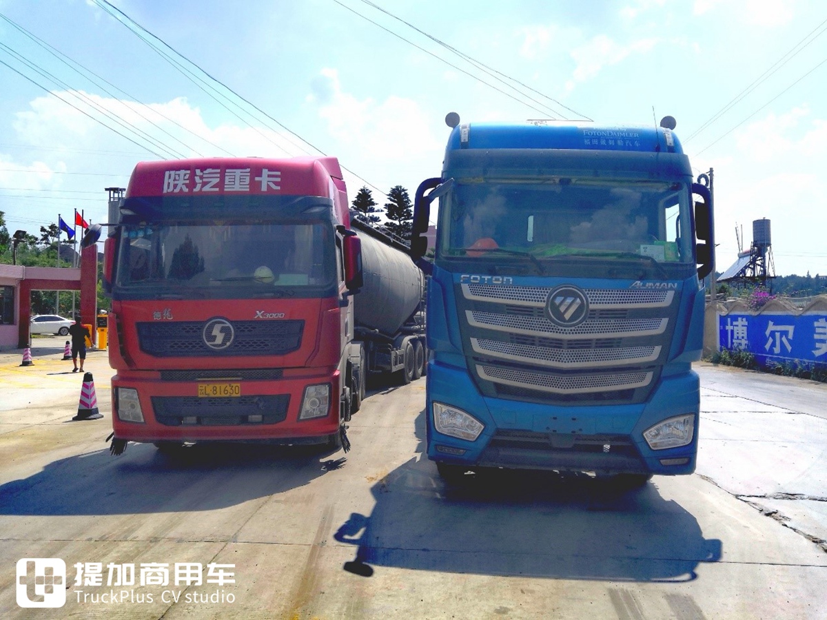 跟我们同时出发的一辆车,同样的车重,11升的陕汽康明斯,马力相差也不是很大,但是最后到达卸货处,时间差了两个小时。