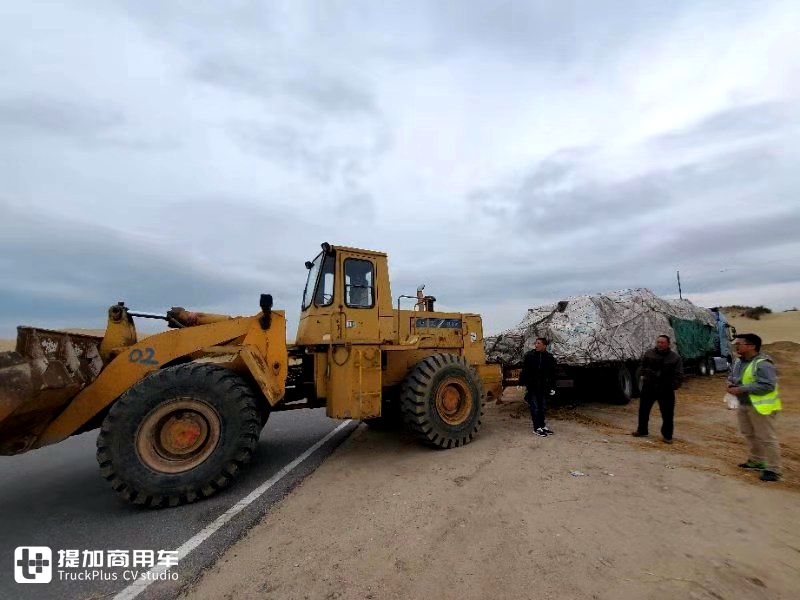 编者按:9月17日,沃尔沃卡车奋进之旅行至青海湖,路边停车修整时偶遇小插曲,后轮深陷沙坑不能自拔,庆幸的是,旁边有一小型水泥站,站里有一大铲车,还有一乐于助人的老大爷...但其实,车辆的脱困过程也并不是一帆风顺,中间也穿插了很多有趣的小故事,尤其是这一行11人的默契配合,面对困难依然乐观的心态,也幸得“老大爷”一一记录,在此分享,以飨读者!