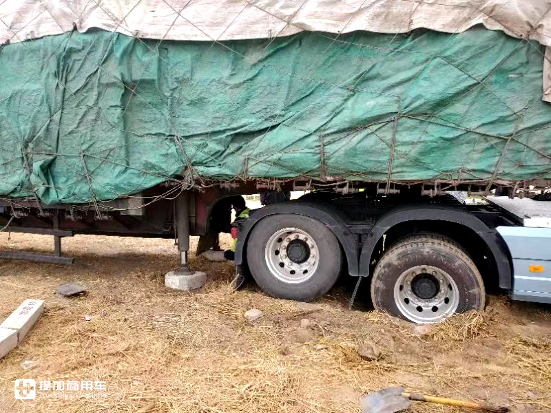 然而当一切就绪,随着铲车的缓缓启动,不多久,只听“嘭”的一声,拖车绳竟然断开了,毕竟我们这里的拖车绳平常都是小车用的,而这辆大卡车,连车带货据说有着将近49吨的重量,我们的大铲车拖这么重没有问题,但拖车绳就不行了。