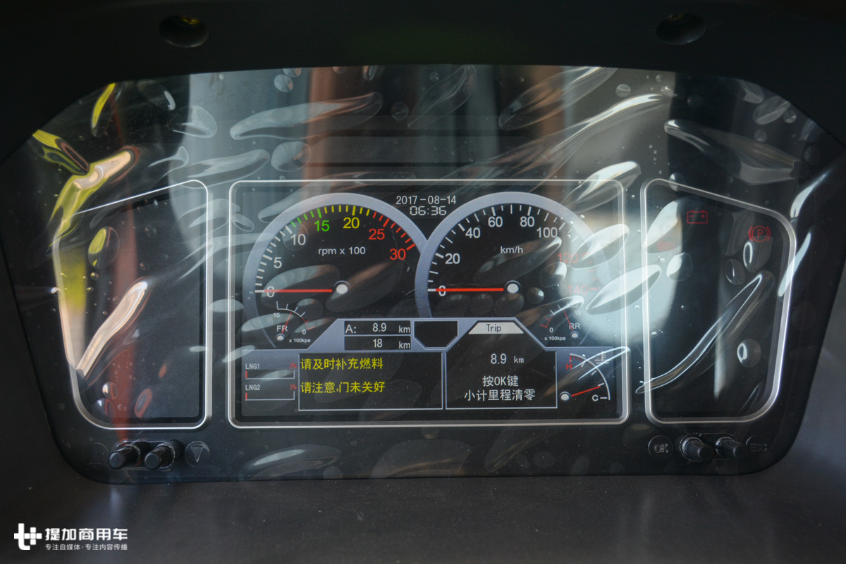 内饰部分也略过,全液晶仪表盘根据燃料类型的变化,多了两根进度条显示LNG气瓶的燃料剩余量。