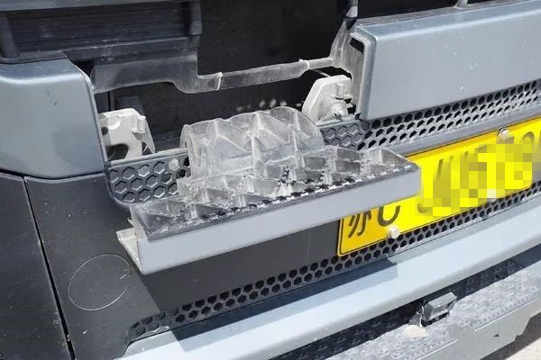 车辆号码牌上方,左右各有一个脚踏板,站在这上面可以擦前面的挡风玻璃,也可以把脚放在这里压压腿活活一下筋骨。