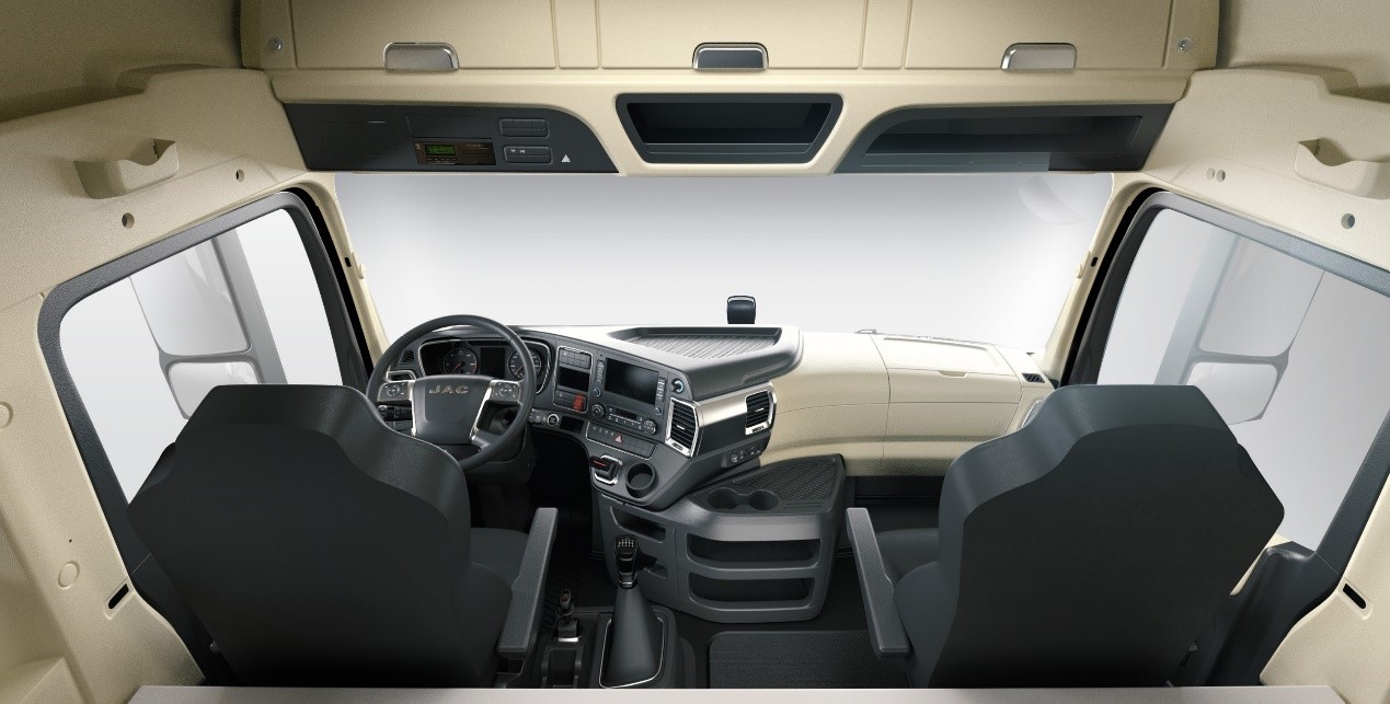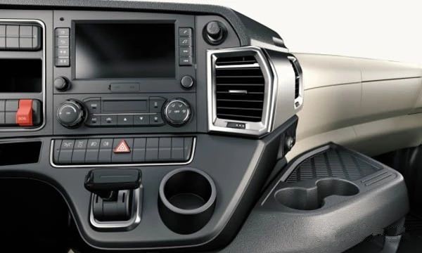 另外, 必须要夸奖一下格尔发K7的隐藏式折叠桌,可以做餐桌,也可以放其他物品,非常实用。在这一路的跟车过程中,《卡车之友网》记者多次使用这个折叠桌,很平稳,这主要归功于格尔发K7驾驶室的四气囊减震以及折叠桌自带的一些弹性,可以减少震动。