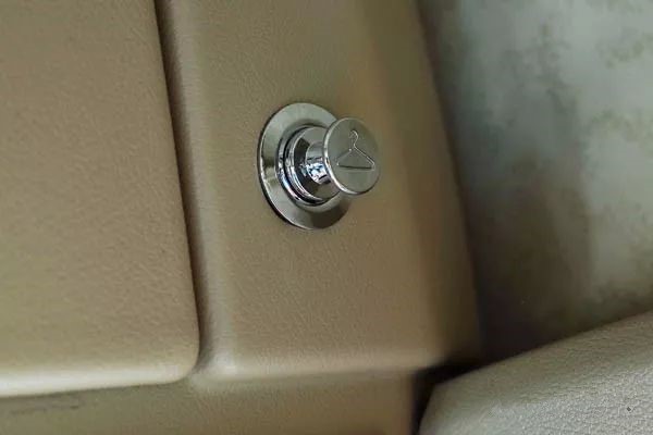 两个驾驶位上方各有一个衣帽架的挂钩,按一下就可以弹起,再按一下,就潜下去和面板一样平。